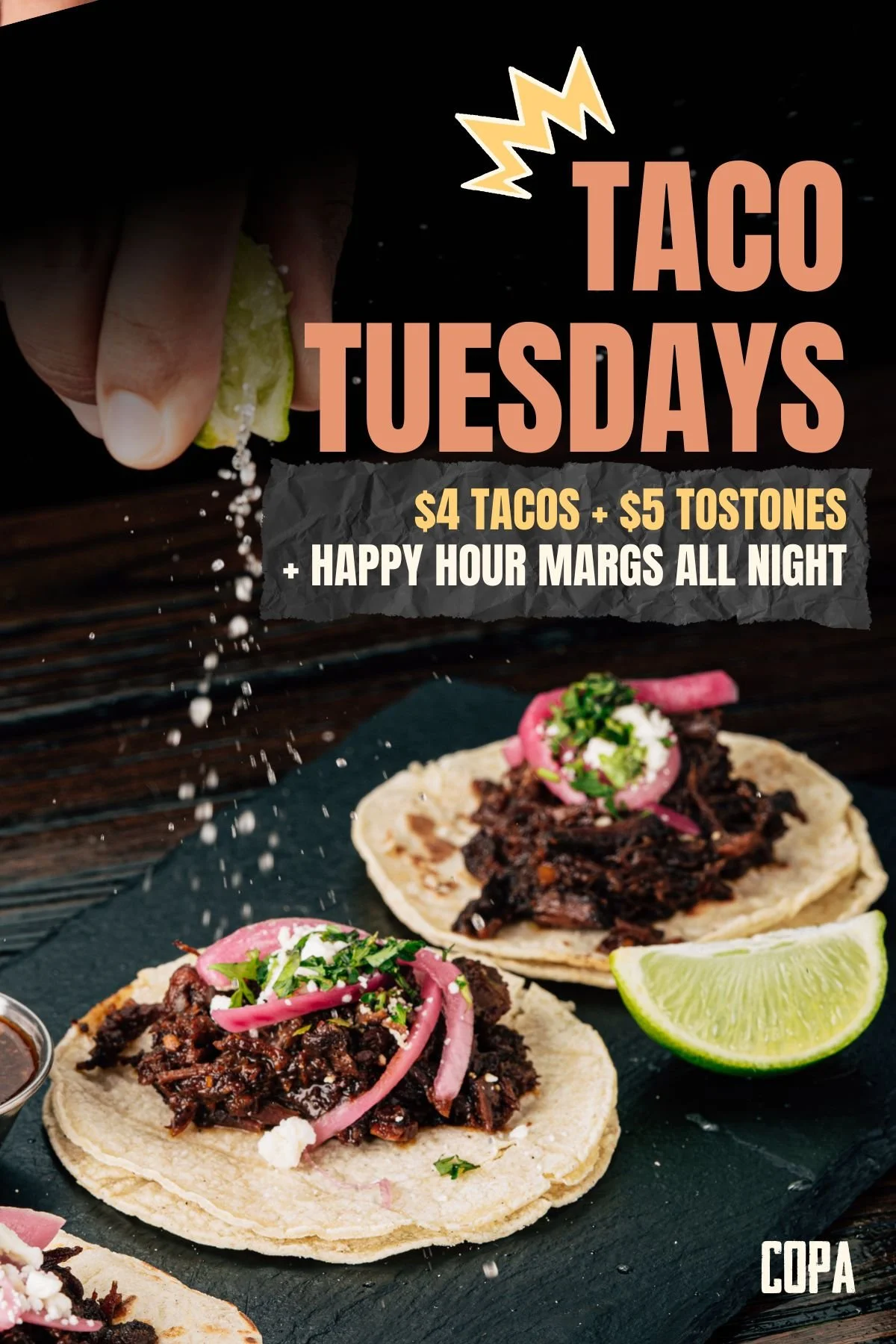 COPA has recently expanded! Now we’re channeling that same magic next door at CAFE COPA—a sun-lit café by day, and a candle lit cocktail lounge by night. Stop in for artisanal coffee, breakfast or lunch, stay productive with free Wi-Fi, or swing by after dark for craft cocktails, conversational sounds, live entertainment, and local showcases in our gallery style space. Ready to explore? Tap below!