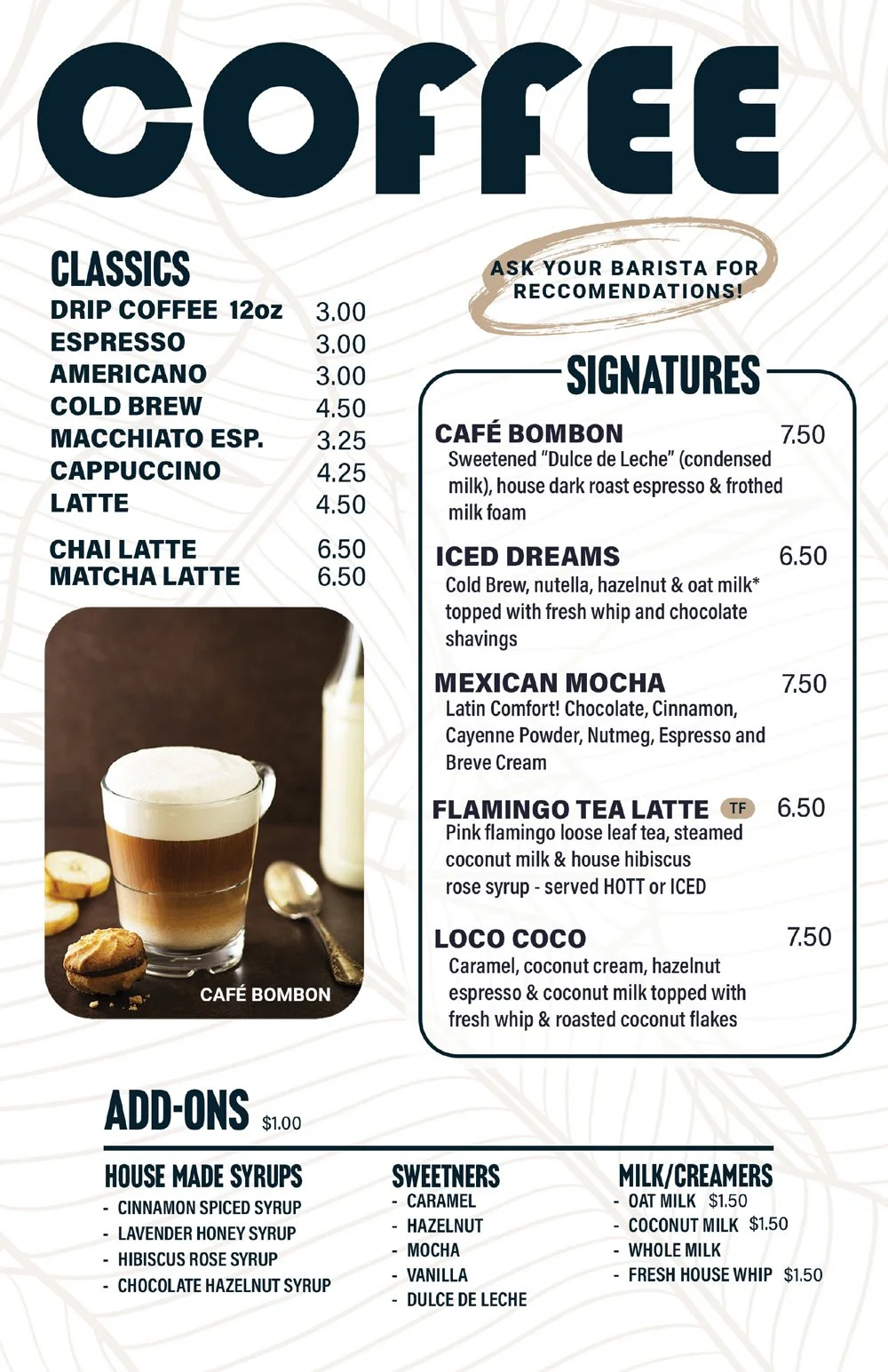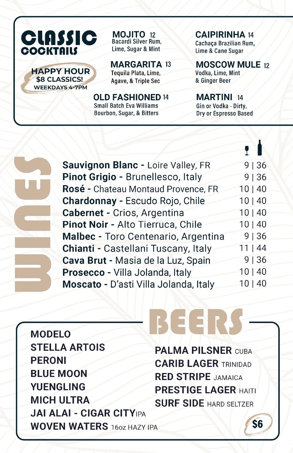 BEER, HOOKAH, COFFEE & CAFE MENUS